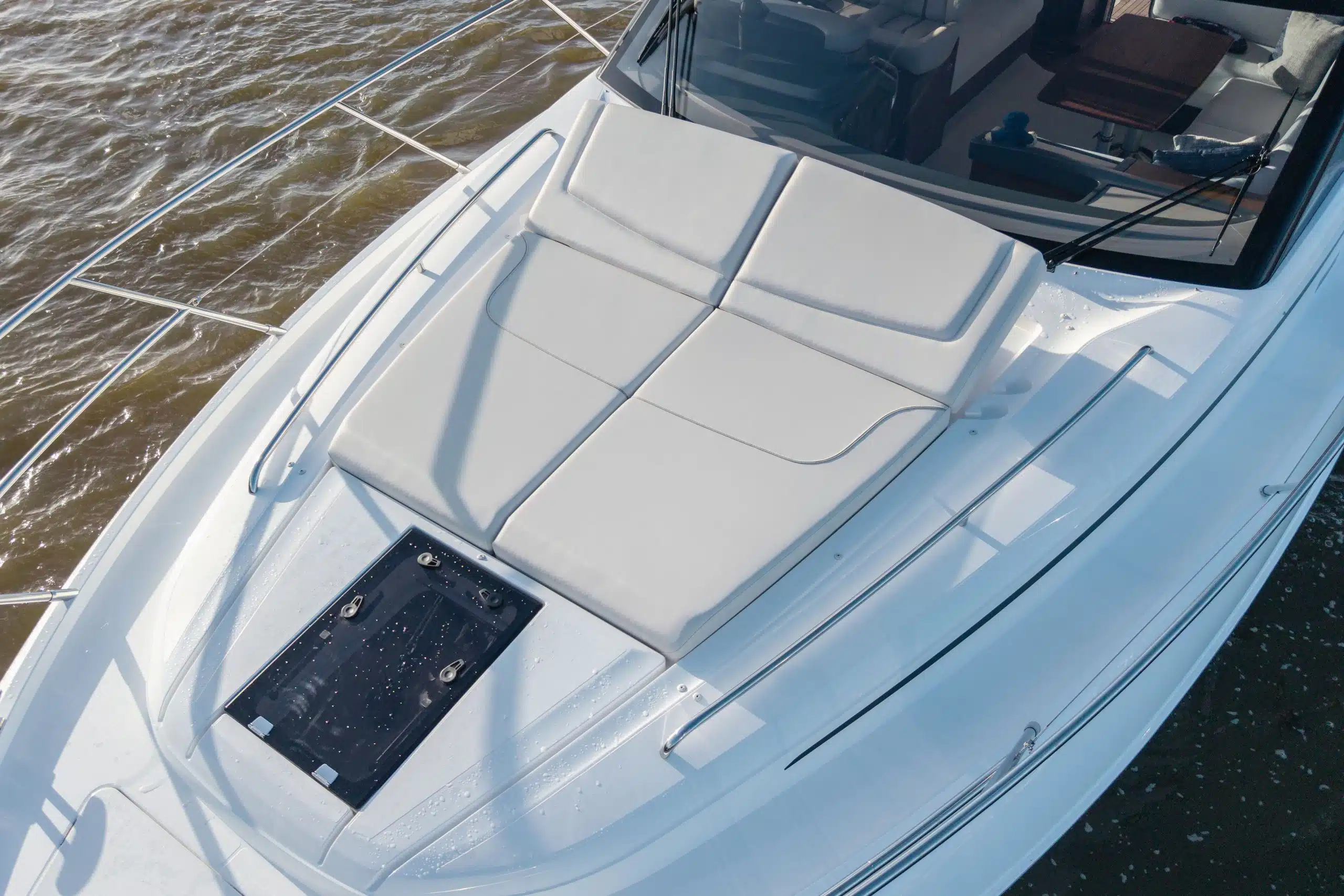 This F50 cruises comfortably with twin Volvo IPS D8-800 (2 x 600 mhp) engines, effortlessly providing speeds up to 34 knots.