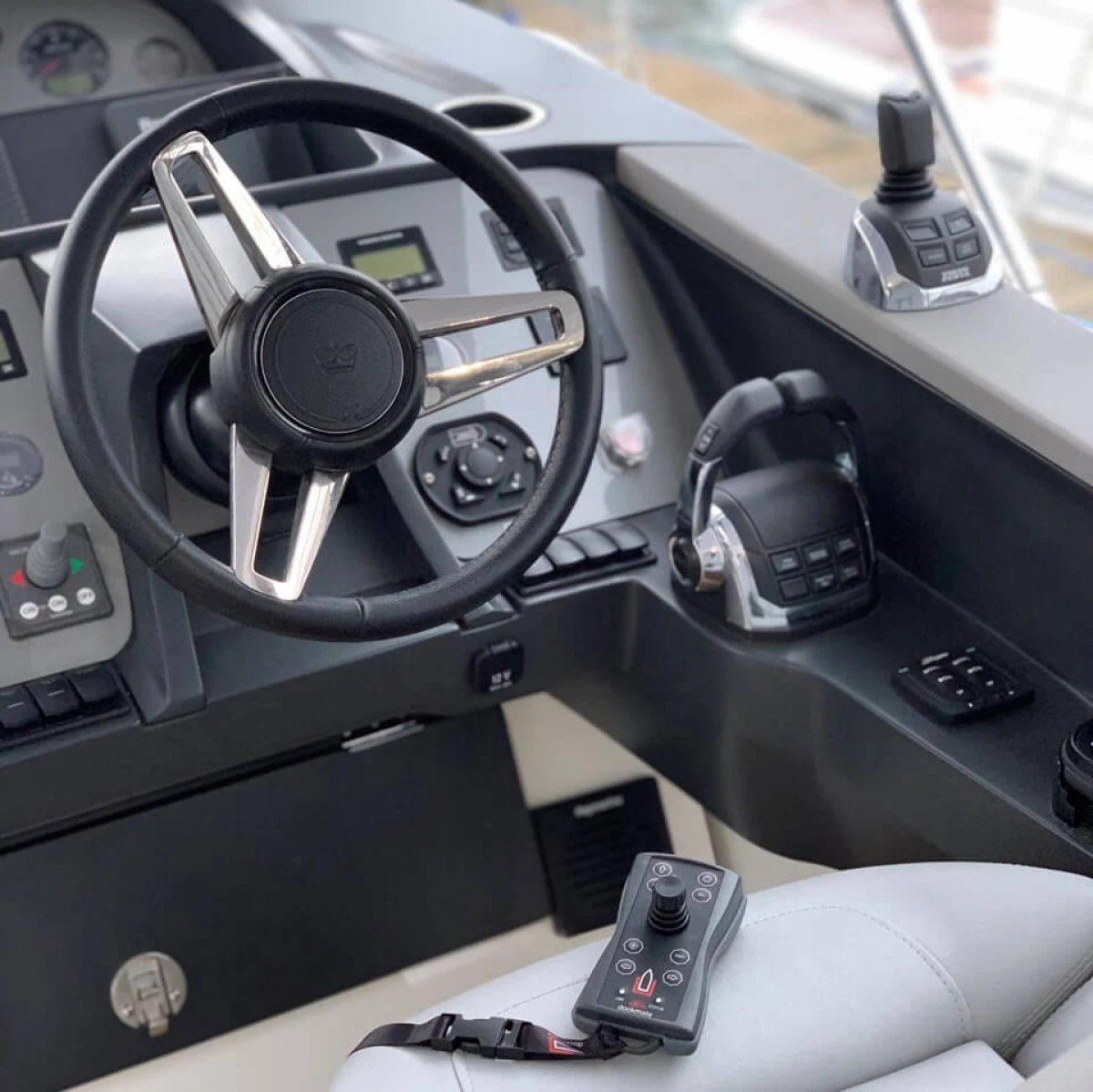Working closely with our partners at Dockmate, our team can retrofit advanced wireless controls to make close-quarters handling smoother and less stressful. Through a simple hand-held device, you can manage engines, bow and stern thrusters, anchor winches and horn. With everything at your fingertips, it offers the freedom you need to dock calmly and confidently, even when conditions are less than ideal.