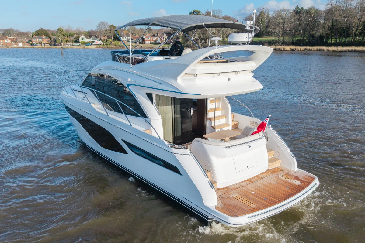 Featuring contemporary F Class styling and advanced onboard technology, the Princess F50 combines a striking look with dynamic performance at sea. This luxury flybridge yacht offers sleek design and spacious living areas, thanks to a generous 50ft (15.7m) hull.