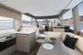 The main deck offers an aft galley layout with a separate dinette – unique for yachts in this size range – enhancing the feeling of space and flexibility. A multi-positional backrest converts the cockpit’s U-shaped seating into either an aft-facing sofa or sunbed.
