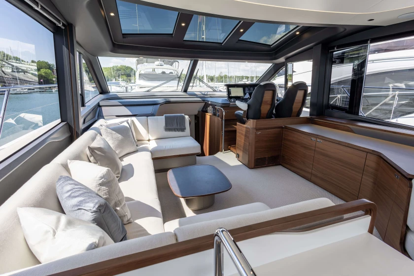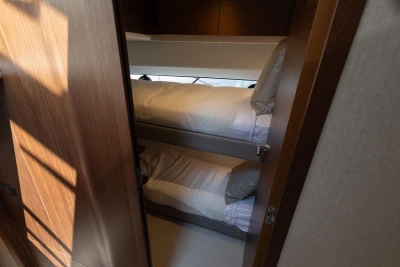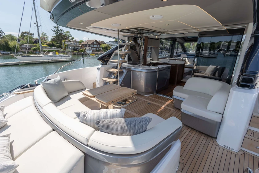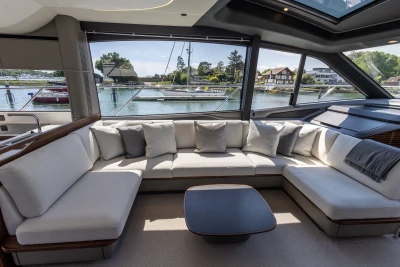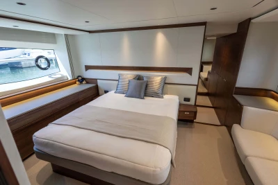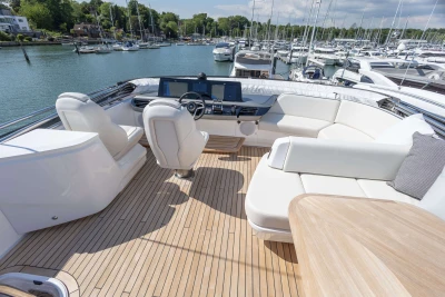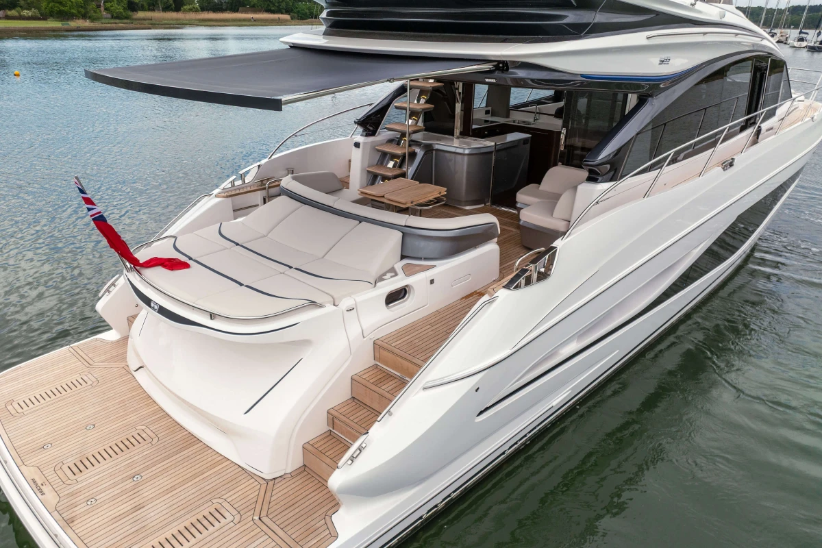 The Princess S65 is a powerful and refined yacht, driven by twin MAN V12-1400 engines with Seakeeper gyro stabilisation and variable speed bow and stern thrusters for effortless performance and control. Designed for easy, luxurious living on board, she offers generous deck spaces, seamless outdoor flow, teak finishes, and a beautifully crafted Walnut interior with flexible accommodation for family or guests. With premium audio, onboard Wi-Fi, and year-round climate control, the S65 makes every journey feel relaxed, connected, and effortlessly livable.
