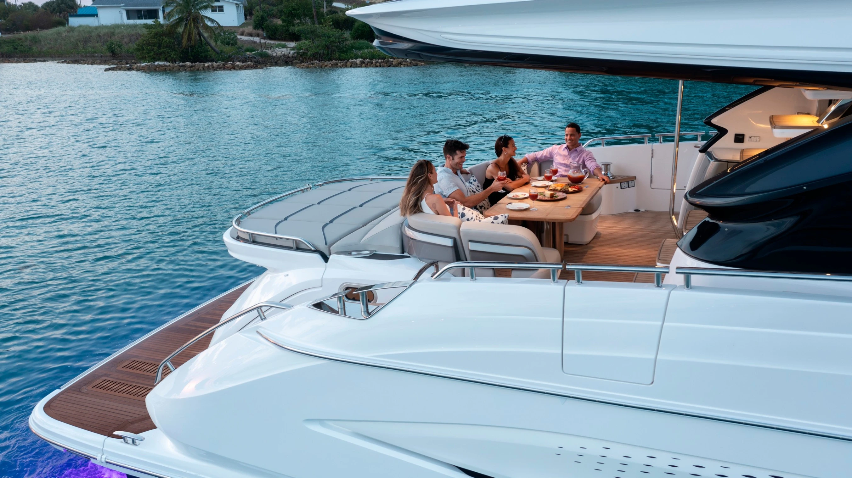 The Princess S72 is the latest addition to Princess Yachts’ renowned S Class family. With her sweeping profile, sleek styling lines and beautiful full-length hull windows, the Princess S72 is cleverly designed to feel open and spacious. Equipped with twin MAN V12 engines at 1650 or 1800 horsepower and a resin-infused deep-V hull, she delivers dynamic performance and smooth handling at speeds of up to 36 knots.