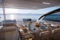 The 28.7 m2 sportbridge is an impressive outdoor living space with multiple seating areas and wetbar with barbecue and generous refrigeration. A converting dining table and an outdoor TV on rise and fall mechanism are also available to suit every occasion. Equipped with MAN V12 1900 or 2000 horsepower engines providing speeds up to 34 knots, plus an optional 7,000 litre fuel tank to enable an extended cruising range, the S80 is optimised for greater efficiency using conventional straight shafts and propellers delivering easy close-quarters manoeuvring and sure-footed thoroughbred performance.