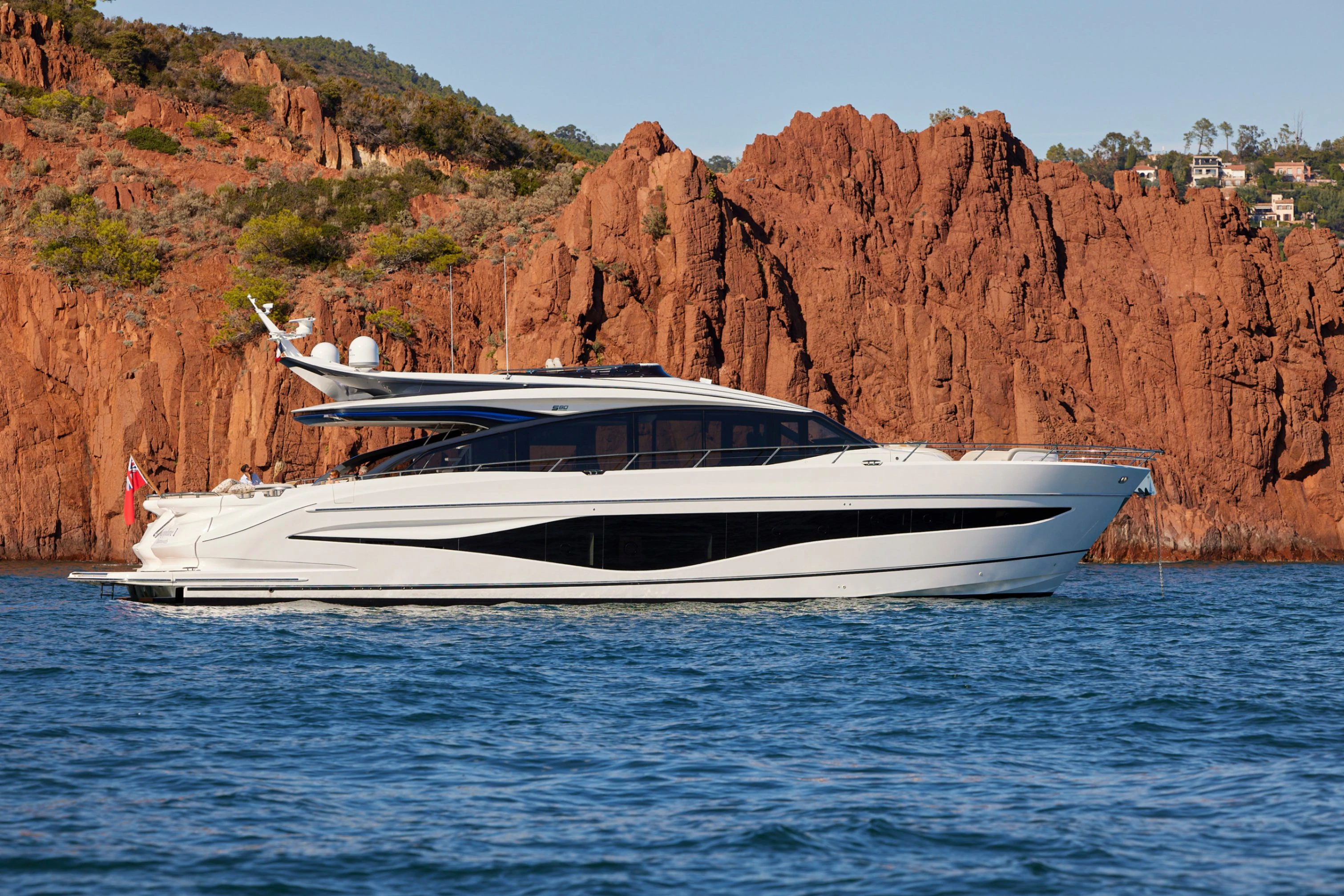 The latest edition to the S Class sportbridge range, the all-new Princess S80. Featuring Princess’ latest sweeping design language, the S80 is designed in collaboration with naval architects Olesinski and Italian design house, Pininfarina. The versatile layout of the all-new S80 allows her to be managed as an owner operated vessel with a vast open saloon and raised helm or discreetly crewed, with the option of an enclosed helm plus crew accommodation for up to 3.