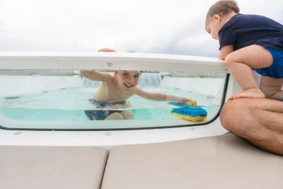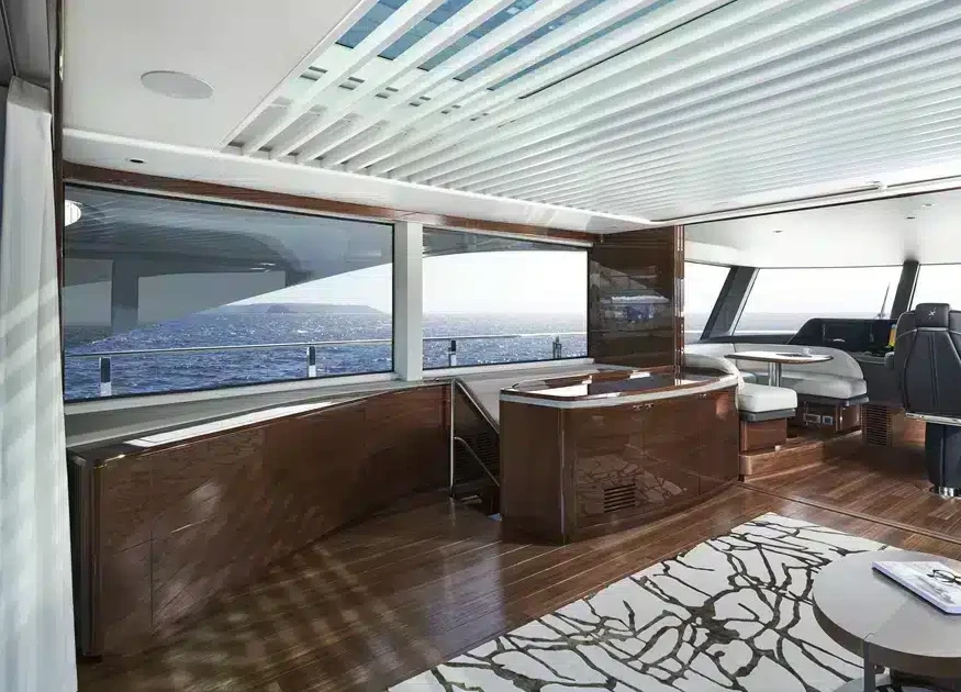 The X95 uses every inch of space, creating large, open living areas the full length and beam of the yacht. The X95 introduces incredible panoramas, with a single-piece window stretching almost the full length of the yacht, offering stunning views of your surroundings.