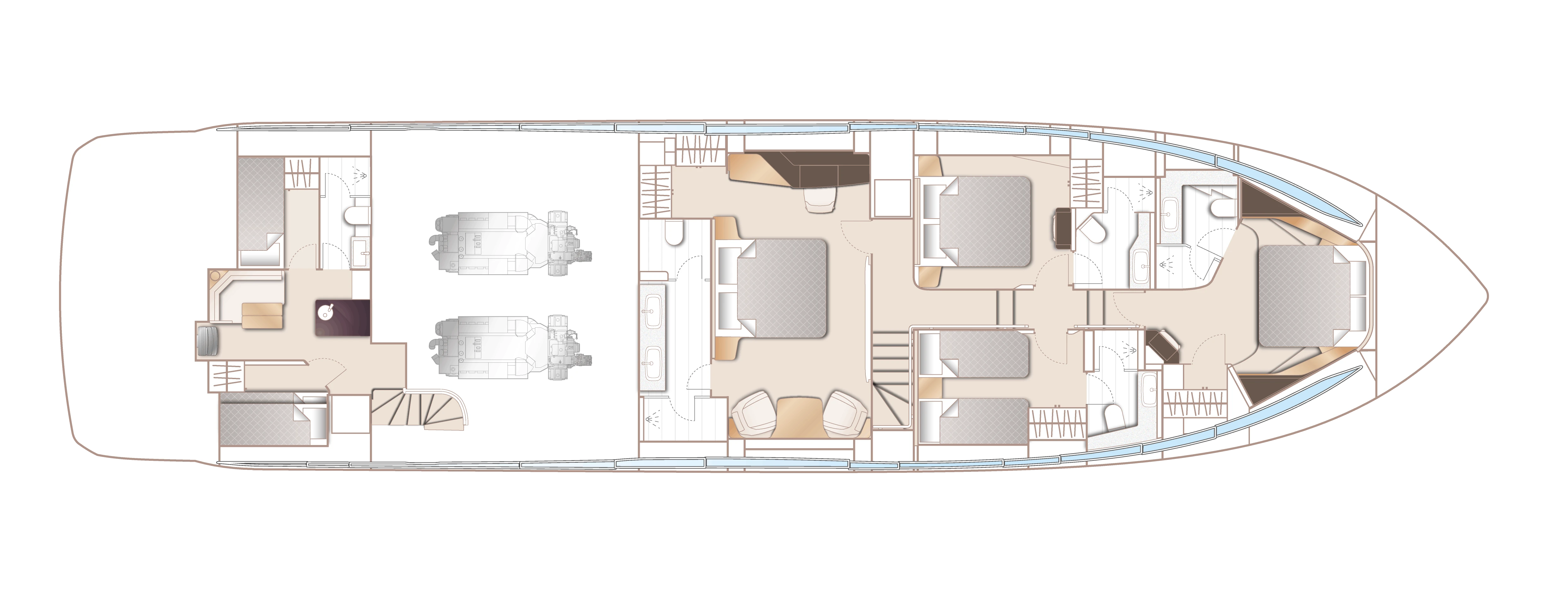 The all-new Y85 boasts outstanding performance with her MAN V12 engines, and with her pioneering deep-V hull design, can handle even the stormy seas promising comfortable, quiet cruising no matter the conditions.