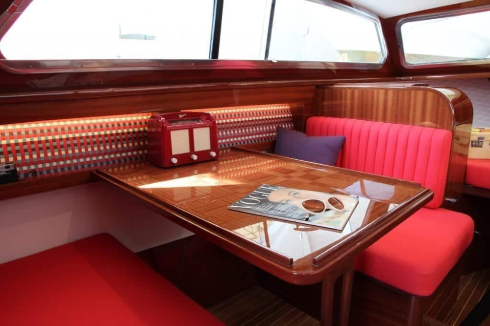 Inside, Princess Design Studio are working on a modern interpretation of the sixties interior so the boat will receive the latest high quality high gloss carpentry finish, including sapele wood, which will be used to ape the original woodwork. Likewise the saloon table will feature modern marquetry but in the original gingham design whilst upholstery will be contemporary fabric but in the original red colour scheme.