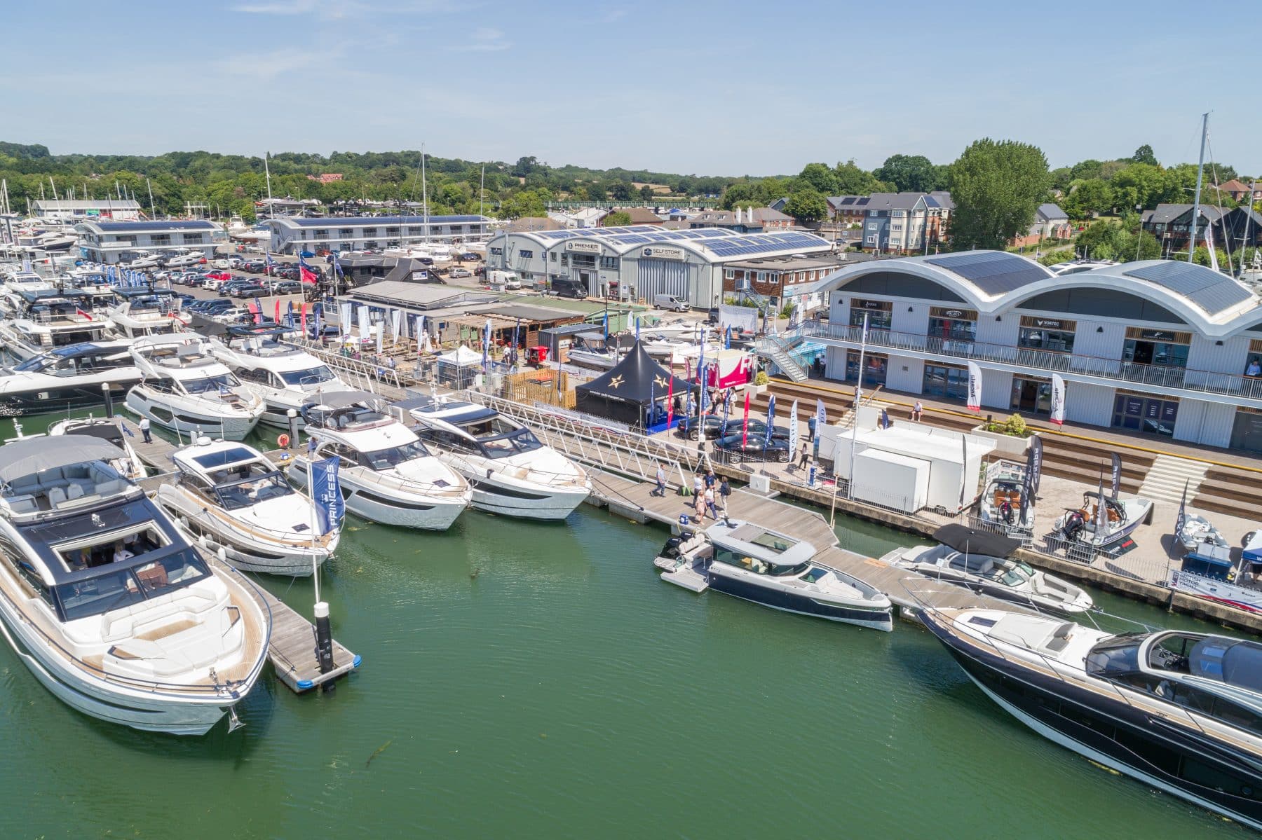 Early summer temperatures soared for the start of the 9th show hosted by Premier Marinas in Swanwick, Southampton. Originally a collaboration of Princess, Sunseeker and Fairline, the show has grown in presence with more than 30 further yacht and marine brands displayed on the picturesque River Hamble. Princess Motor Yacht Sales showcased an exceptional line-up including a Princess S78, V55, V50 Deck Saloon, F62 and F50 on the marina. Sister brand Argo Yachting, exhibited on land showing Saxdor Yachts along with details on Chris-Craft UK and the newly acquired Pardo Yachts for the UK, plus pre-loved brokerage yachts. The new sales pavilion, 'The Saltings', was also officially launched to press and visitors, with the unveiling taking place in front of the new impressive Princess and Argo offices.
