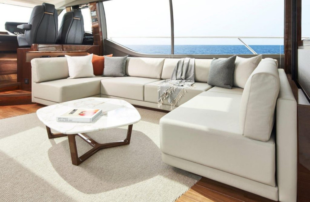 Even in the context of Princess's current fleet, the V78 is a remarkable piece of work. On the main deck, the vast single-level saloon space comes with an aft galley and a selection of seating areas; and there's also a superbly sociable arrangement for the helm, with an elevated L-shaped lounge seat to port, in the lee of the screen.