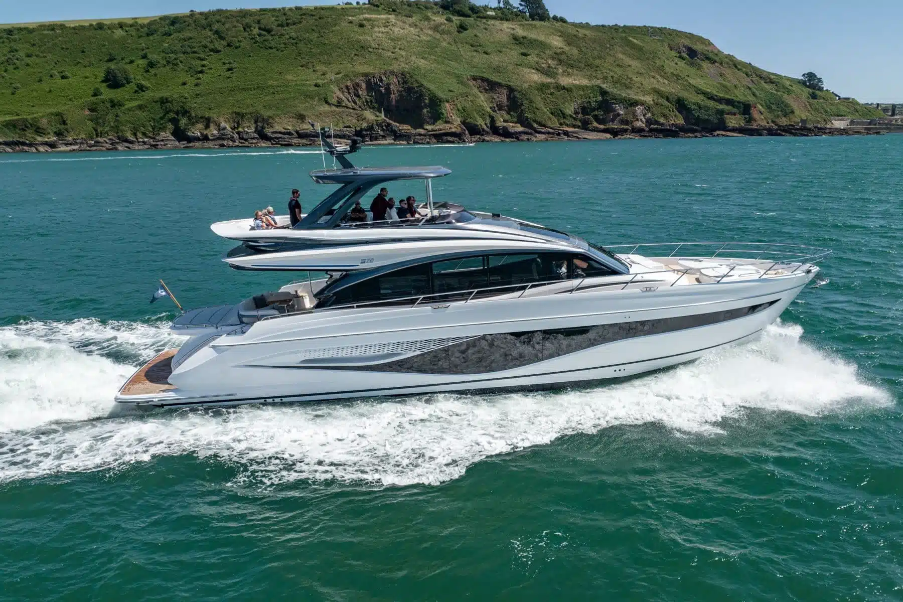 Recently launched at the 2023 Düsseldorf Boat Show, the new Princess S72 provides a sporty alternative to the highly successful Y72 and joins the popular S Class family. As with all the S Class models, the S72 features sleek exterior lines that are extenuated by beautifully sculptured full-length hull windows to provide a powerful profile. Equipped with twin MAN V12 engines at 1650 or 1800 horsepower and a highly efficient resin-infused deep-V hull, she delivers a dynamic performance and agile handling at speeds of up to 38 knots.
