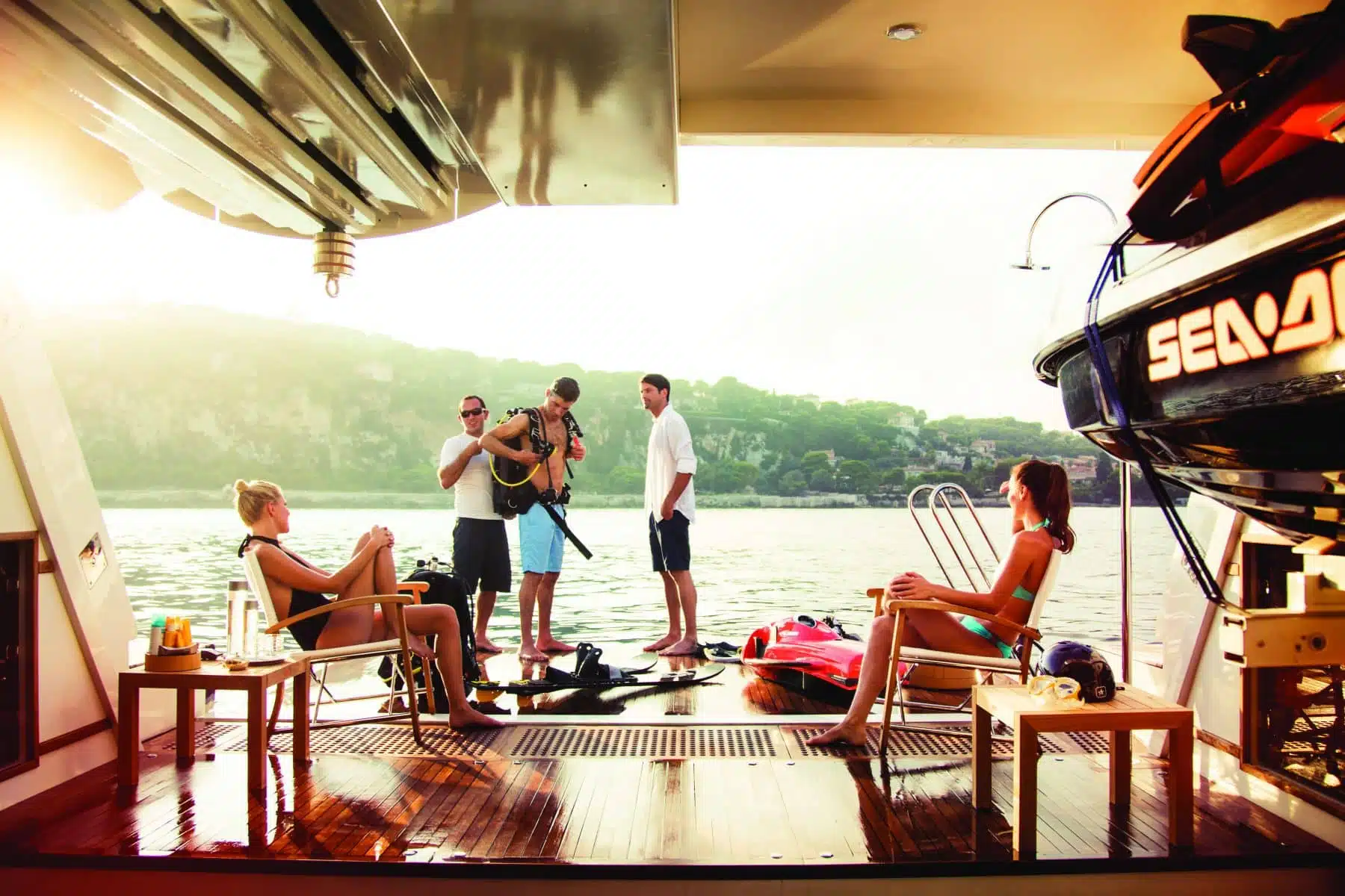 Explore like never before, enjoy an epic adventure through the seas on a jet ski. Here at Princess Motor Yacht Sales Individual, we sell Yamaha and Seadoo jet skis known for their durability, power and exhilarating performance. Zip around your yacht in an adrenalin-fuelled experience, creating shapes and lines in the water behind you. A jet ski is the perfect watertoy to have on board, to enjoy those crystal clear waters and have fun with family and friends.