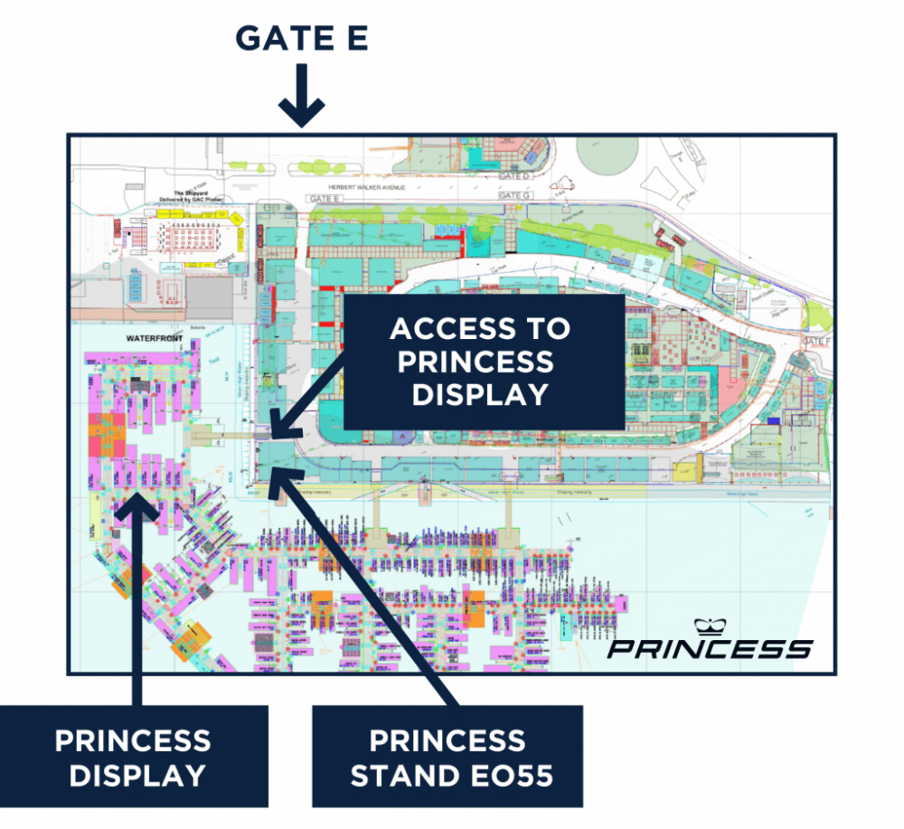 Please note, the Princess display has moved location. You can now access the display via the bridge to the right of Princess hospitality as below;