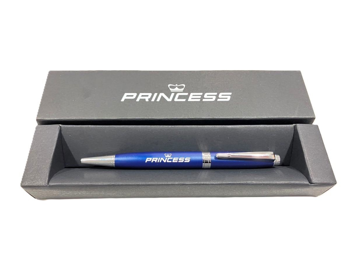 Princess Signature dark blue twist action Ballpoint pen with bright chrome fitting. Parker style black ink refill.