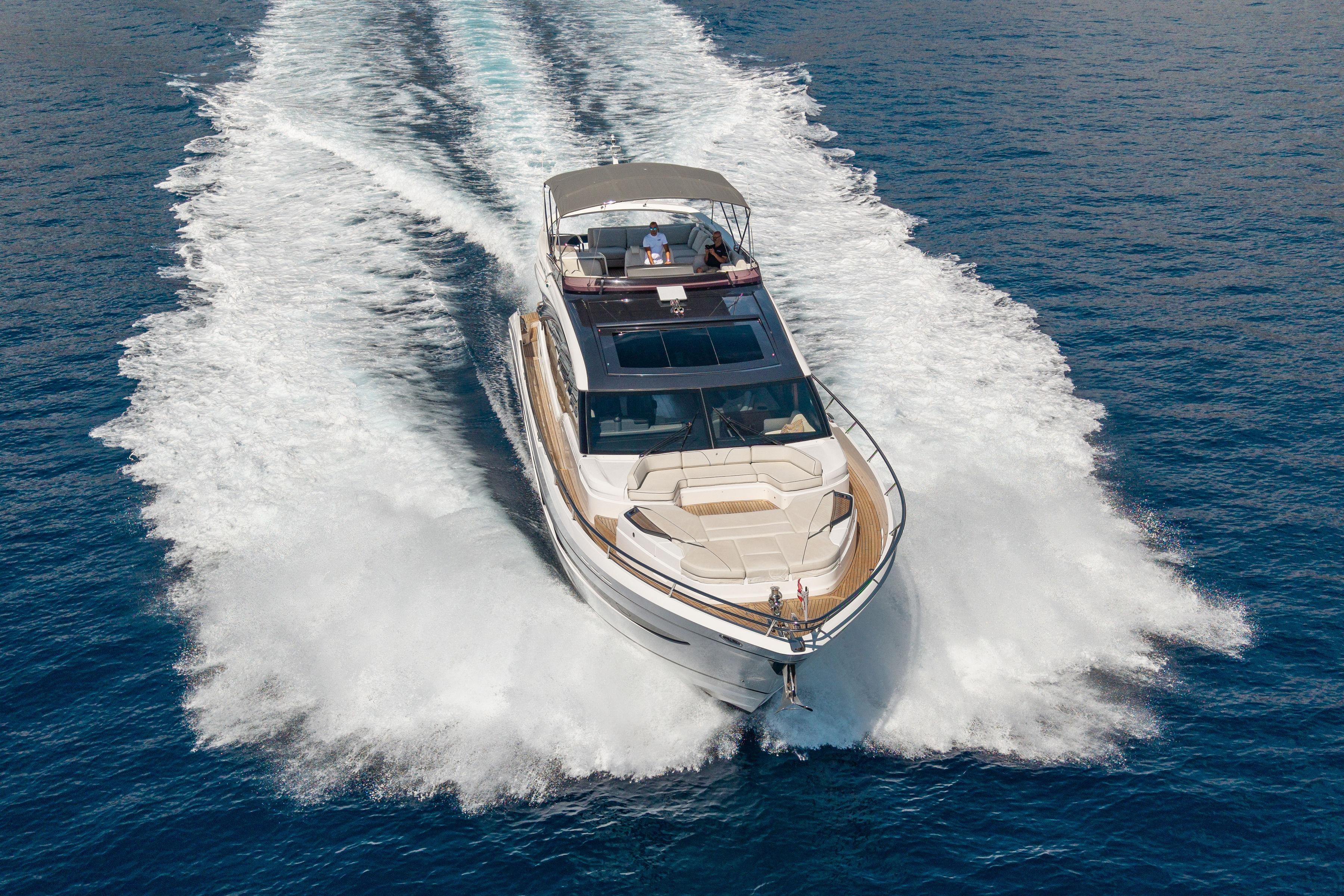 2022 Model and Build • Full manufacturer maintenance schedule • Ex tax • Twin MAN V12-1900 engines • Crew cabin accommodating 2 crew • White with dark grey water line hull • Walnut interior wood satin finish • 4 cabins accommodating 8 guests • Kohler 28kW generator with additional 20.5kW Kohler generator • Electro-hydraulic transom platform • Electrically operated sun awning to aft end of hardtop • EU version chart plotters • Raymarine navigation equipment • Freshwater maker • Underwater Lumishore full colour transom and hull lights • Premium audio/visual system • Onboard WiFi, external WiFi and 3G/4G antenna • Starlink internet connectivity •LED TV's throughout • Naim Uniti Atom audio system with bluetooth • Icemaker • Williams 435 Sportjet tender